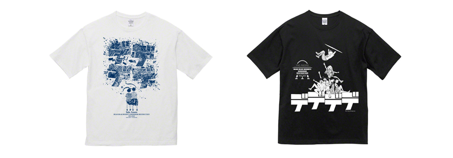 Tシャツ / 長袖Tシャツ / スウェット / パーカー / トートバッグ / ポーチ / てぬぐい / グラス / 豆皿 / 蓄光ラバーキーホルダー / アクリルスタンド(ガチャ) / アクリルキーホルダー / リフレクターキーホルダー / 缶バッジ(大) / ミニ缶バッジ(ガチャ)のデザインを制作致しました。