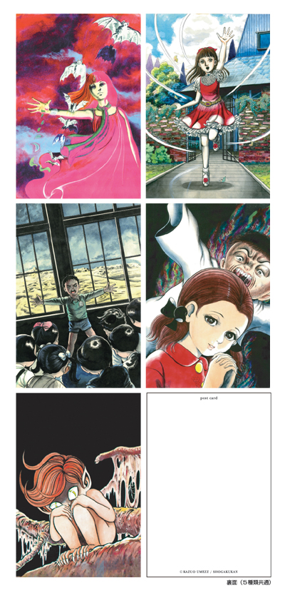 楳図かずおの描くカラーイラストのポストカードセットです。(おろち / 洗礼 / 漂流教室 / 赤んぼ少女 / 猫目小僧 )。原画からの高解像度スキャンされたデータを仕様しております。